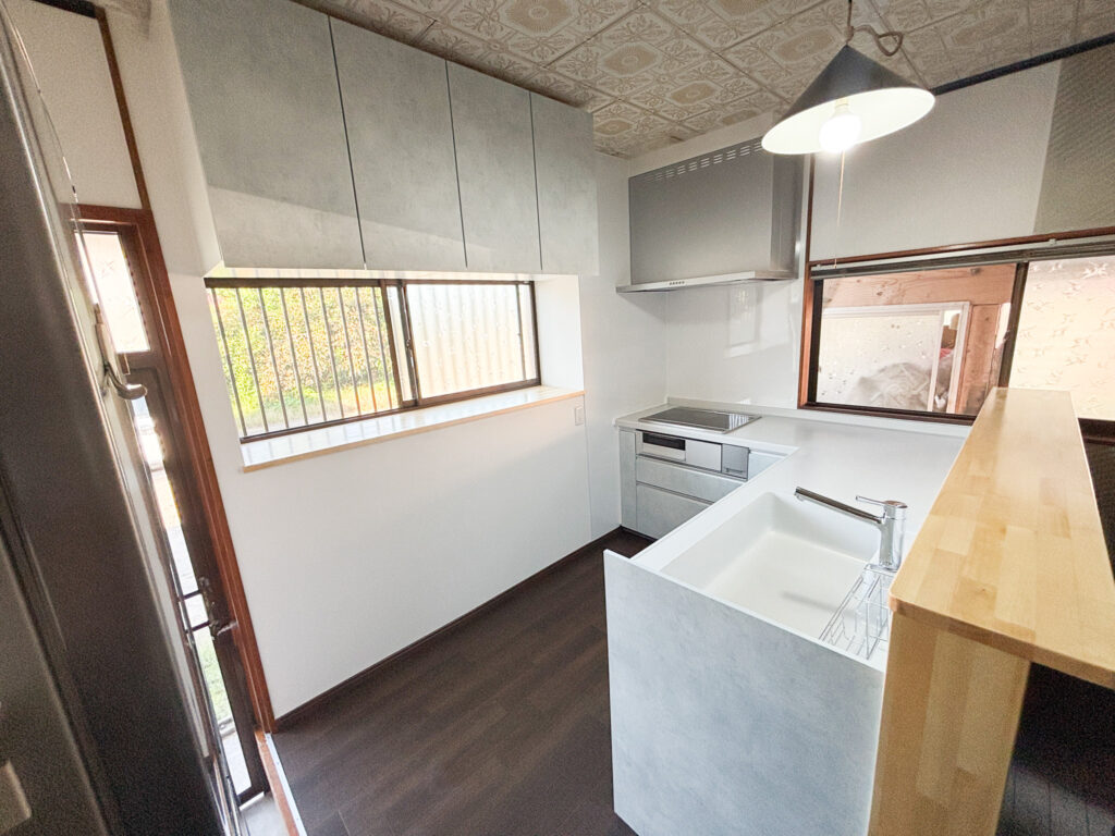 約築30年たったキッチンを今回、壁付けから対面にキッチンの取替をご依頼いただきました。
